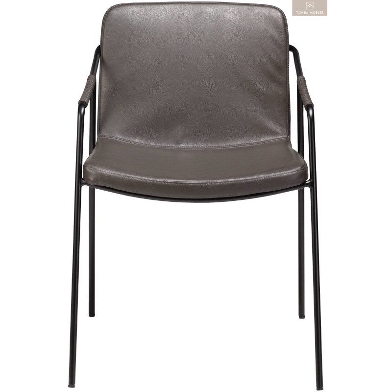 BOTO-karmstolen är en klassisk design av By Georgsen. De tunna metallbenen som fortsätter in i armstöden sveper sig runt stolsryggen och sitsen har en mjuk klädd rygg och sits. Det konstgjorda lädret som lindas runt armstöden är en dekorativ detalj som lyfter designen till nästa nivå. BOTO-kollektionen består av stolar, bar- och diskpallar och fåtöljer.