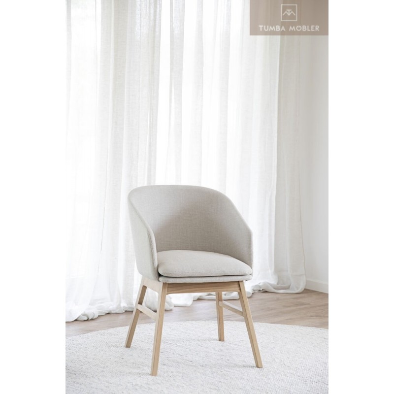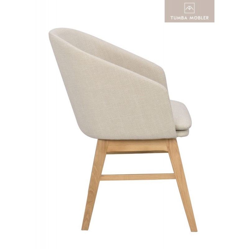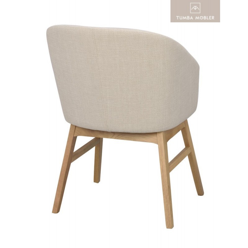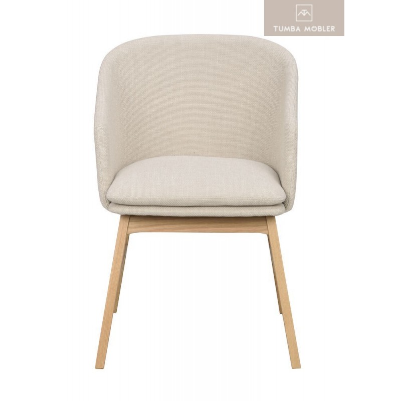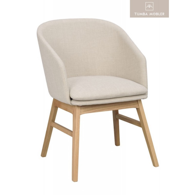 Karmstolen Windham i beige tyg med ben av massiv ek har hög sittkomfort och är trevlig att sitta i länge. Jordnära skandinavisk design, hög kvalitet och FSC-certifierat trä gör Windham till en hållbar stol över tid. Sittdynan har avtagbar klädsel. Finns i två tyger samt fyra färger av massiva lackade träben. Säljs endast i 2-pack.