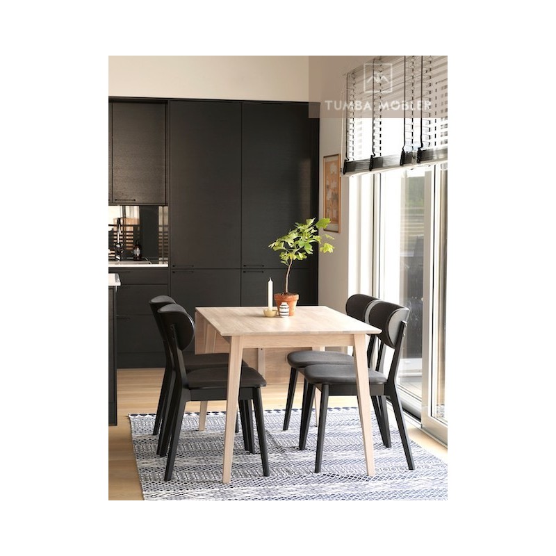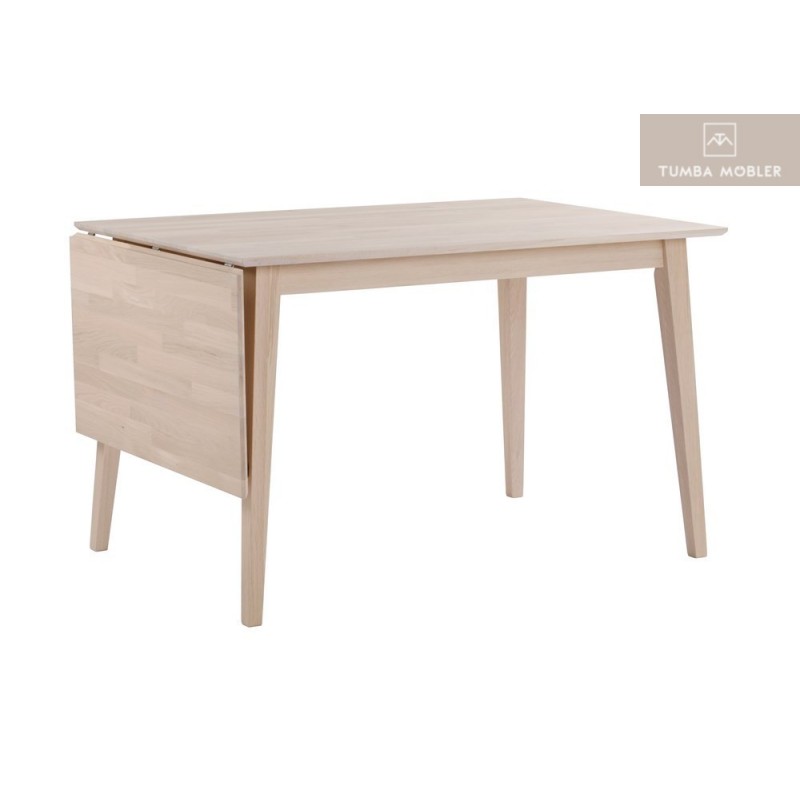 Klaffbord i stilren och enkel design. Matbordet är i ek som behandlats med vitpigmenterad hårdvaxolja. Med fällbar klaff som ger plats för fler. Maxlängd med utfälld klaff 165 cm. Klaffbordet ingår i serien Filippa.