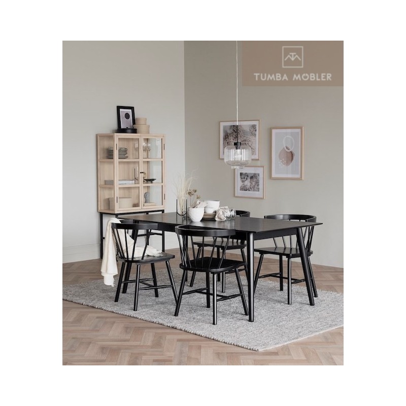 Lotta matbord 180x90 cm i stilren skandinavisk design. Bordet har en svartlackad yta som är lätt att torka av. Matbordet matchas snyggt med exempelvis pinnstolarna Lotta, Carmen eller Casey. Lotta matbord finns i flera olika storlekar samt som barbord.