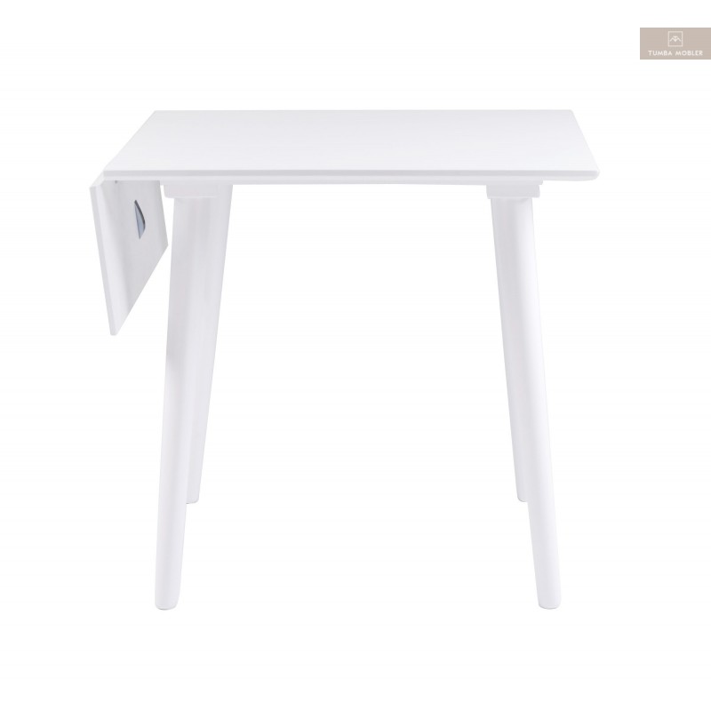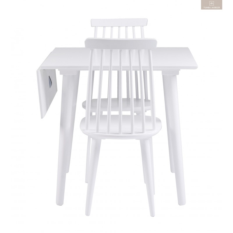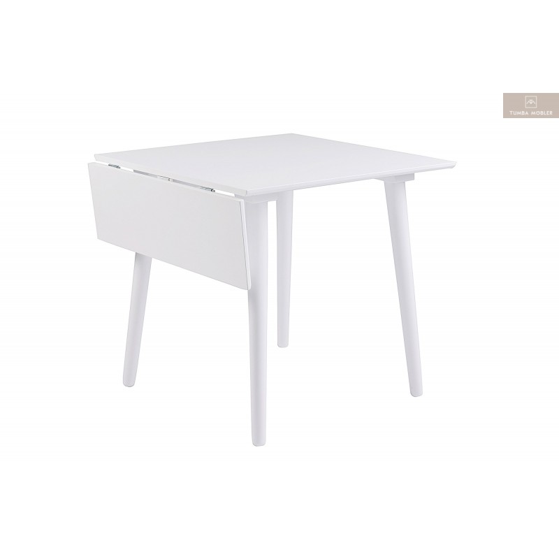 Lotta klaffbord vit är Matbord i stilren skandinavisk design. Fäll ut bordskivan vid behov och få ett större bord med plats för fler. Klaffbordet ingår i vår serie Lotta.