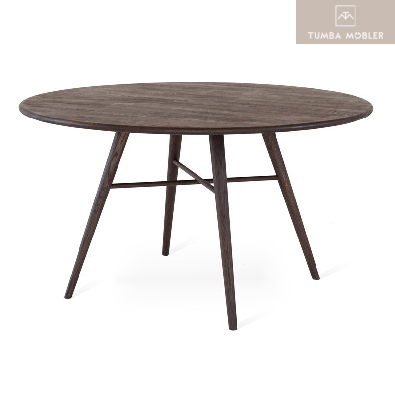 Löderup är ett runt matbord i massiv ek som har fått en rökoljad ytbehandling. Bordet andas hög finish där den rundade kanten på toppskivan möter de svarvade benen i fulländad harmoni.