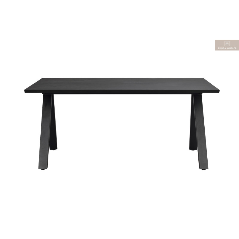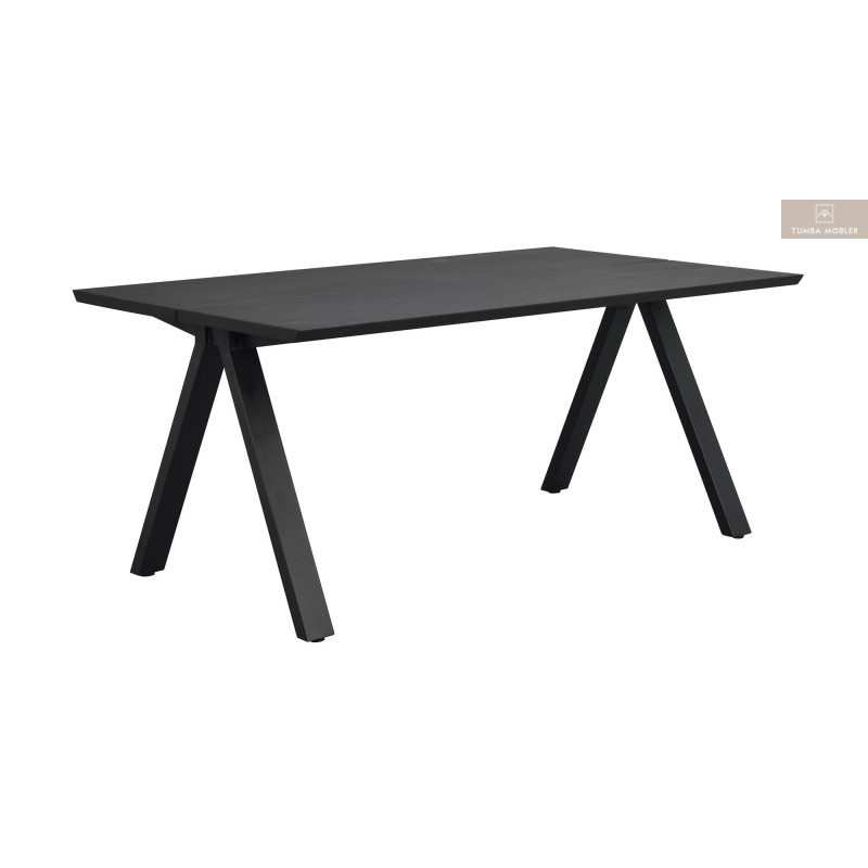 Carradale matbord 170 cm i svartlackad FSC-certifierad ek. Tvådelad massiv bordsskiva med borstad yta och V-formade ben i svart pulverlackad metall. De eleganta V-benen ger bordet ett luftigt uttryck. Bordsskivan kan kompletteras med 1 eller 2 tilläggsskivor à 50 cm vilket kan göra bordet upp till 270 cm långt.