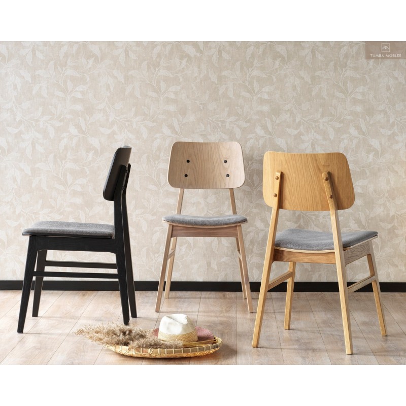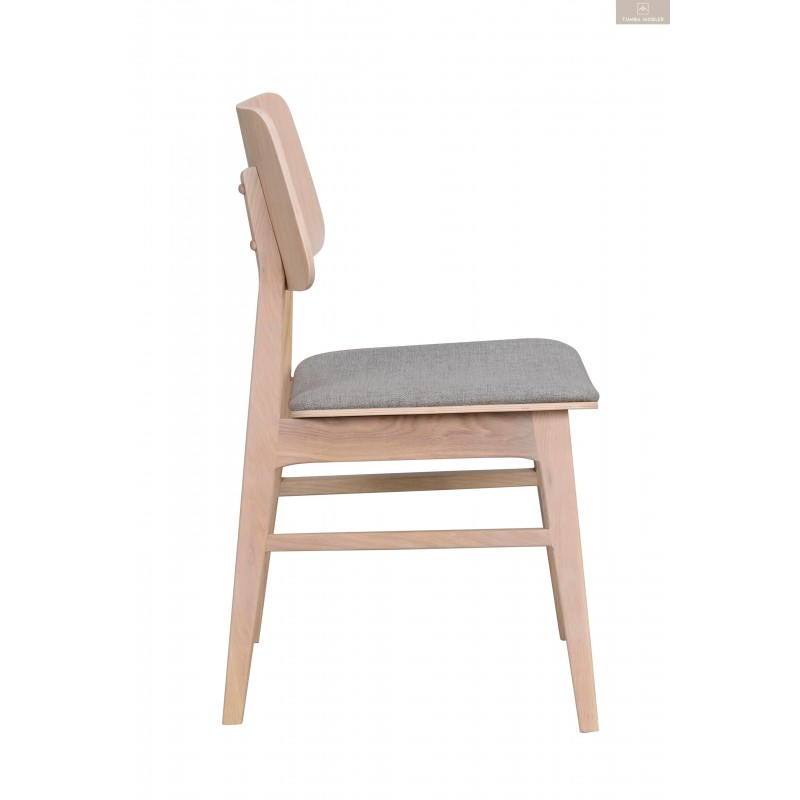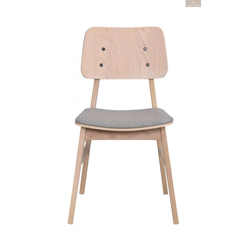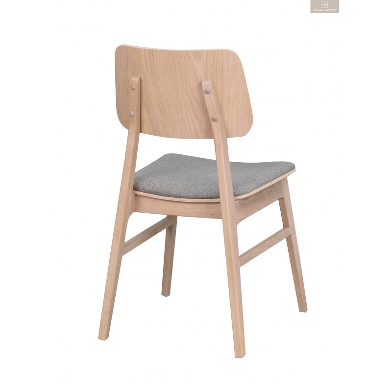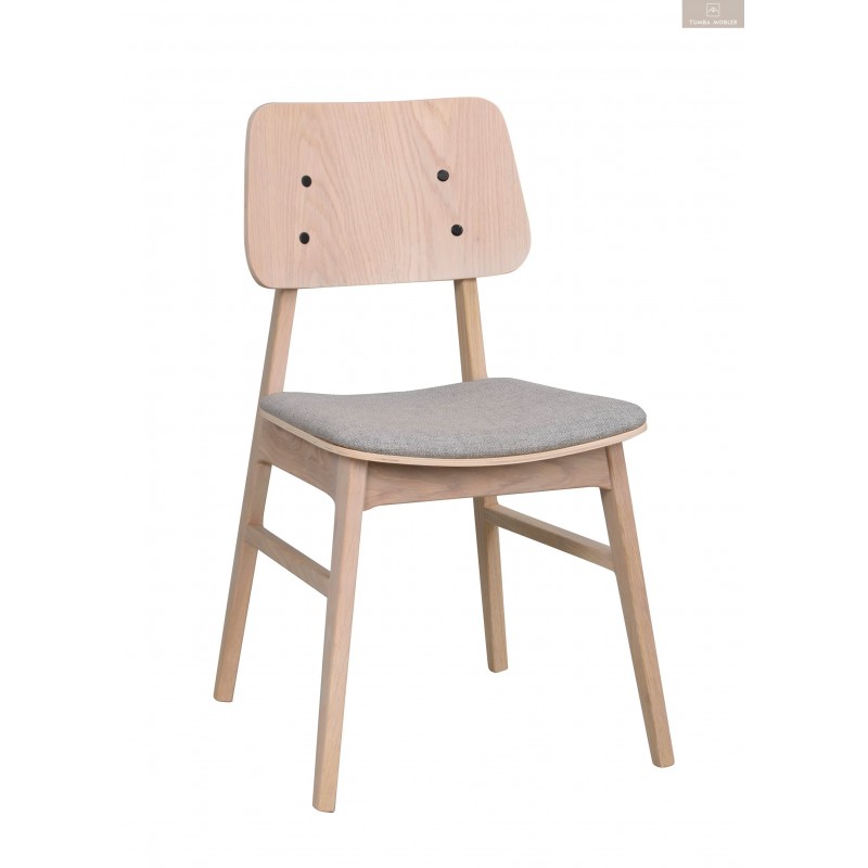 Nagano stol i massiv vitpigmenterad ek och med sits i ljusgrått tyg. Stilren, komfortabel och stabil stol med fina arbetade detaljer. Stolen ingår i serien Nagano och finns i flera färgställningar.