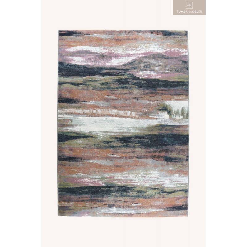Den skurna täta luggen gör att mattan känns mjuk att sätta fötterna på. Sky pryds av ett abstrakt mönster som påminner om penseldrag eller en vacker himmel. Färgerna går i en mild orange nyans samt rosa, vita och mörkgrå partier, som tillsammans skapar en vacker harmonisk helhet.