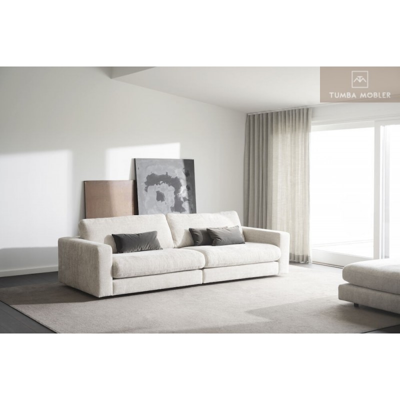 Duncan 3-sitssoffa är en lyxig loungesoffa med generöst sittdjup – fantastiskt skön att sjunka ner i. Den stilrena designen gör vardagsrummet modernt och inbjudande. Soffan är här klädd i tyget Robin#01 ljusgrå, i en vacker och mjukt ljusgrå ton, exklusivt och slitstarkt vilket passar dig som söker komfort och kvalitet.