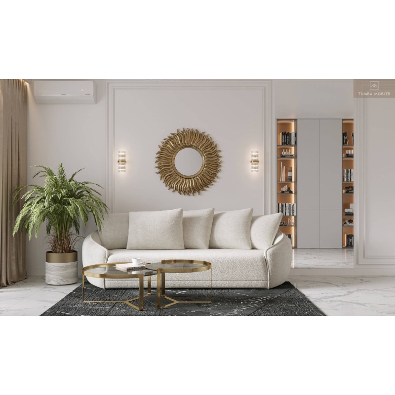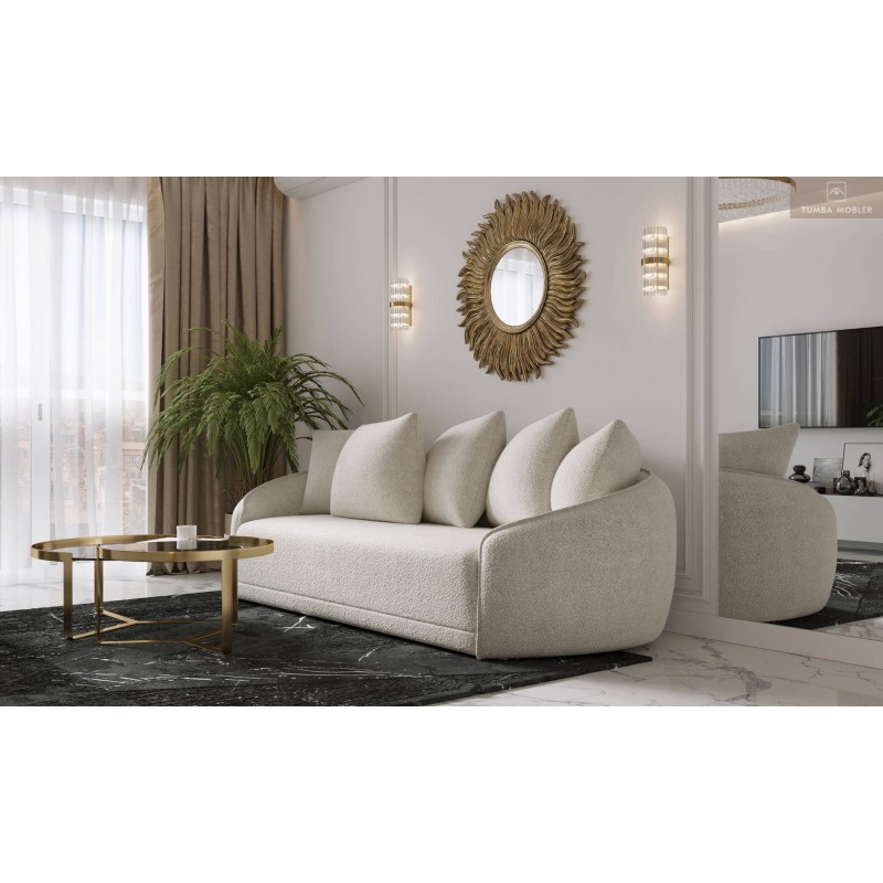 soffan kommer med runda detaljer flera kuddar i ryggen för bättre komfort och snyggare utseende,