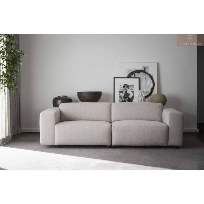 Willard 3-sitssoffa är en minimalistisk och modern loungesoffa – här klädd i det vackra och trendiga bouclétyget Alice ljusbeige (#01). Designen är mjuk och rund, vilket ger en varm och inbjudande känsla.