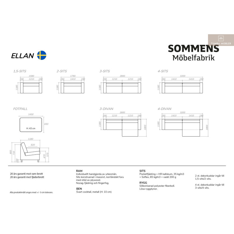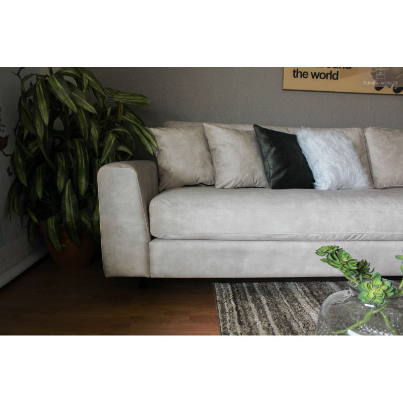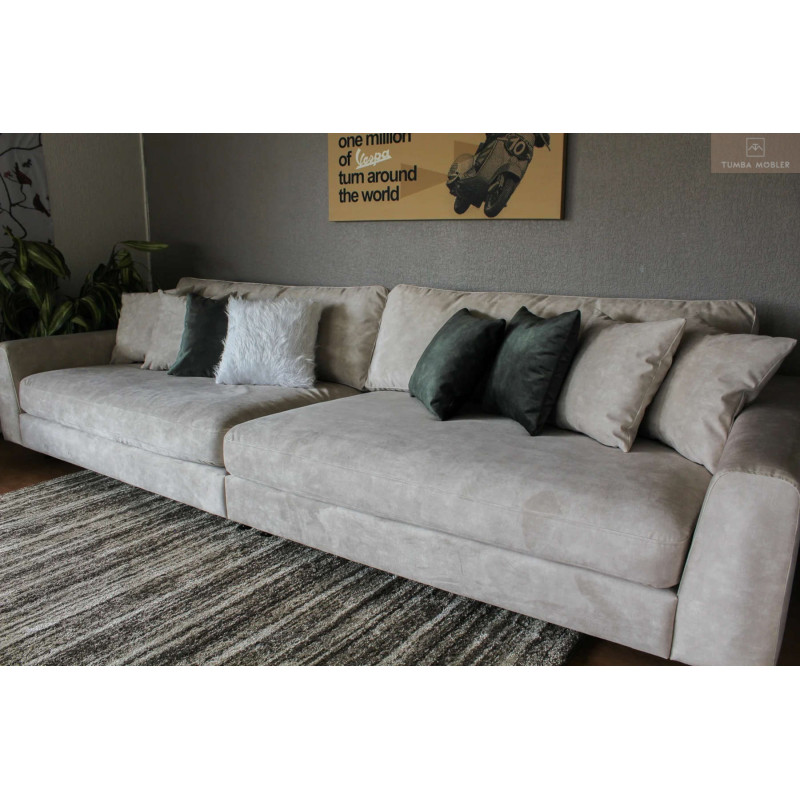 Ellan 4-sits är en elegant, djup Svensk handtillverkad och exklusiv loungesoffa, som bjuder in till mysiga och varma stunder