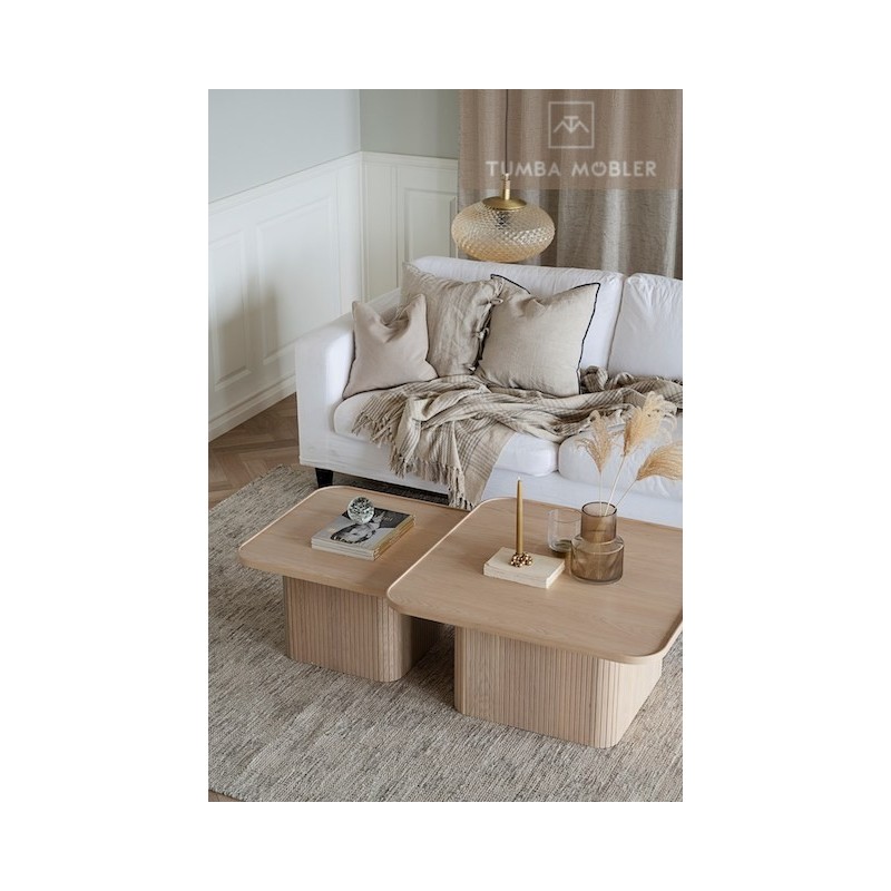 Sullivan soffbord 60x60 cm är ett trendigt exklusivt soffbord i skandinavisk design. Foten har ett smakfullt linjerat mönster. Soffbordet har en fanerad bordsskiva med rundande hörn som ger den en mjuk känsla. Sullivan soffbord finns i två olika storlekar, placera dem separat eller tillsammans som satsbord. Finns även i vitpigmenterad ek.