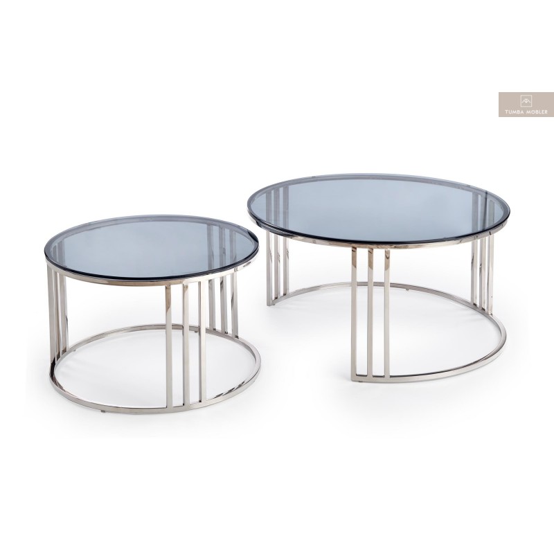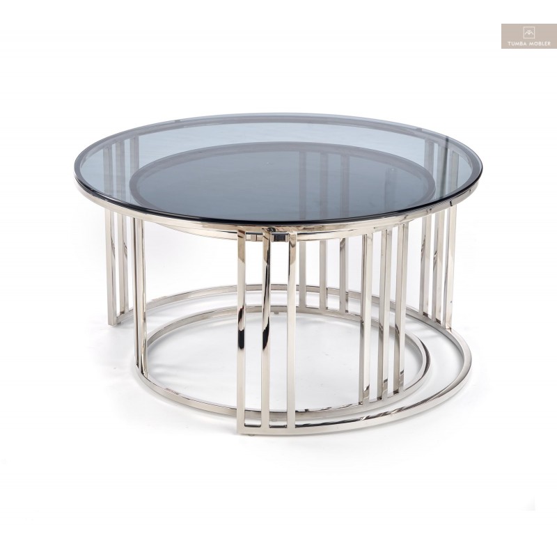 Mercury soffbord är ett modernt, vackert och elegant soffbord som kommer i två delar, topp skiva i härdat rökt glas. underrede med elegant modell i krom stål.